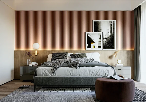 MDF is a versatile and affordable material that is widely used for bedroom panelling. It can be painted or finished to mimic the look of wood or stone, offering the aesthetic appeal of natural materials without the high cost. MDF panels are easy to work with, can be customized to fit any design, and are incredibly durable. This material is an excellent choice for those looking for a cost-effective, eco-friendly solution that still provides the luxurious look of high-end materials.